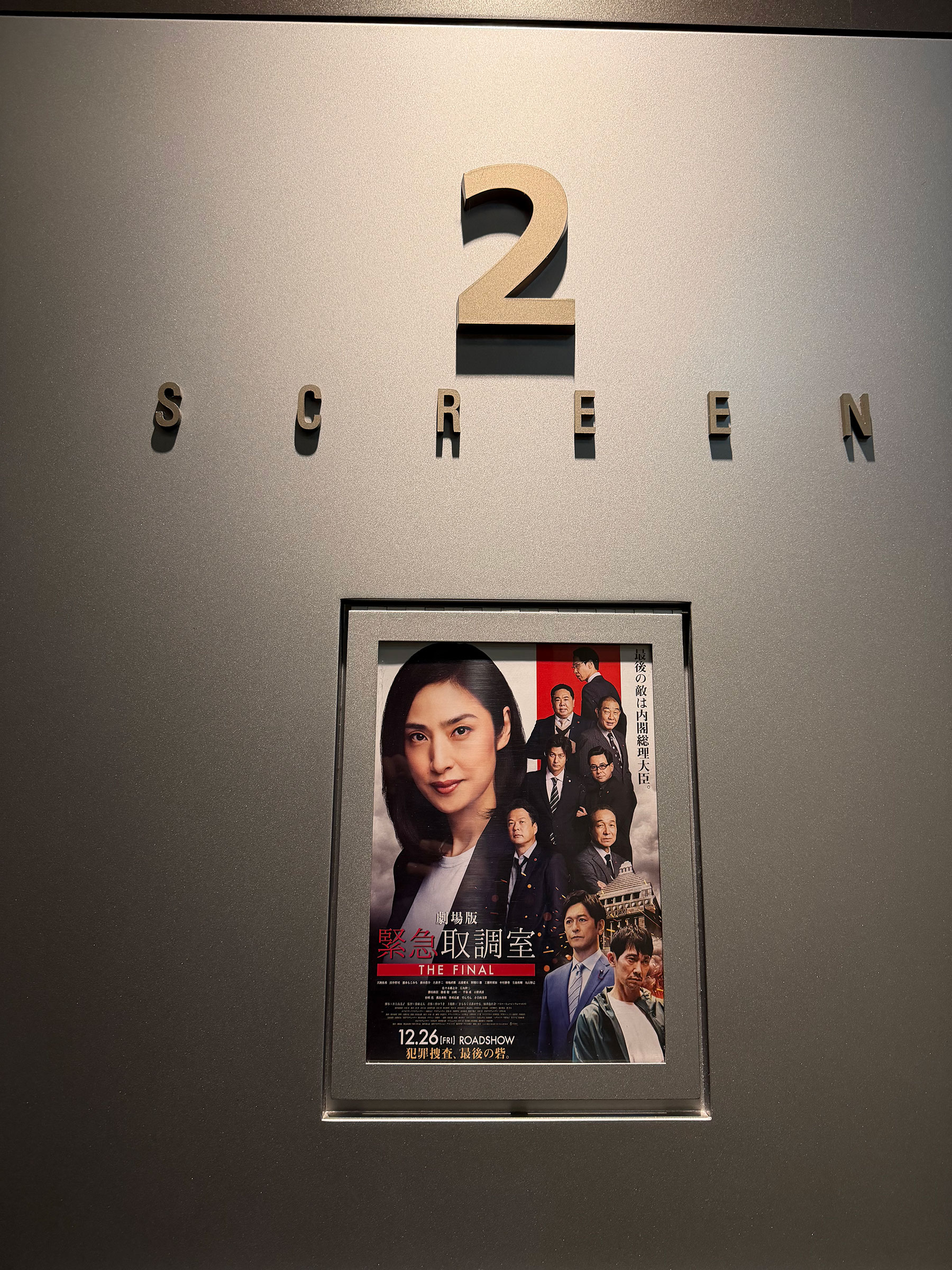 鑑賞したのは、テレビ朝日系列の人気ドラマシリーズの完結篇、警察内のくせ者達が、完全可視化した取調室で厄介な容疑者、関係者と対峙する緊急事案対応取調班が、総理大臣を相手に最後の戦いに臨む『緊急取調室 THE FINAL』(東宝配給)。