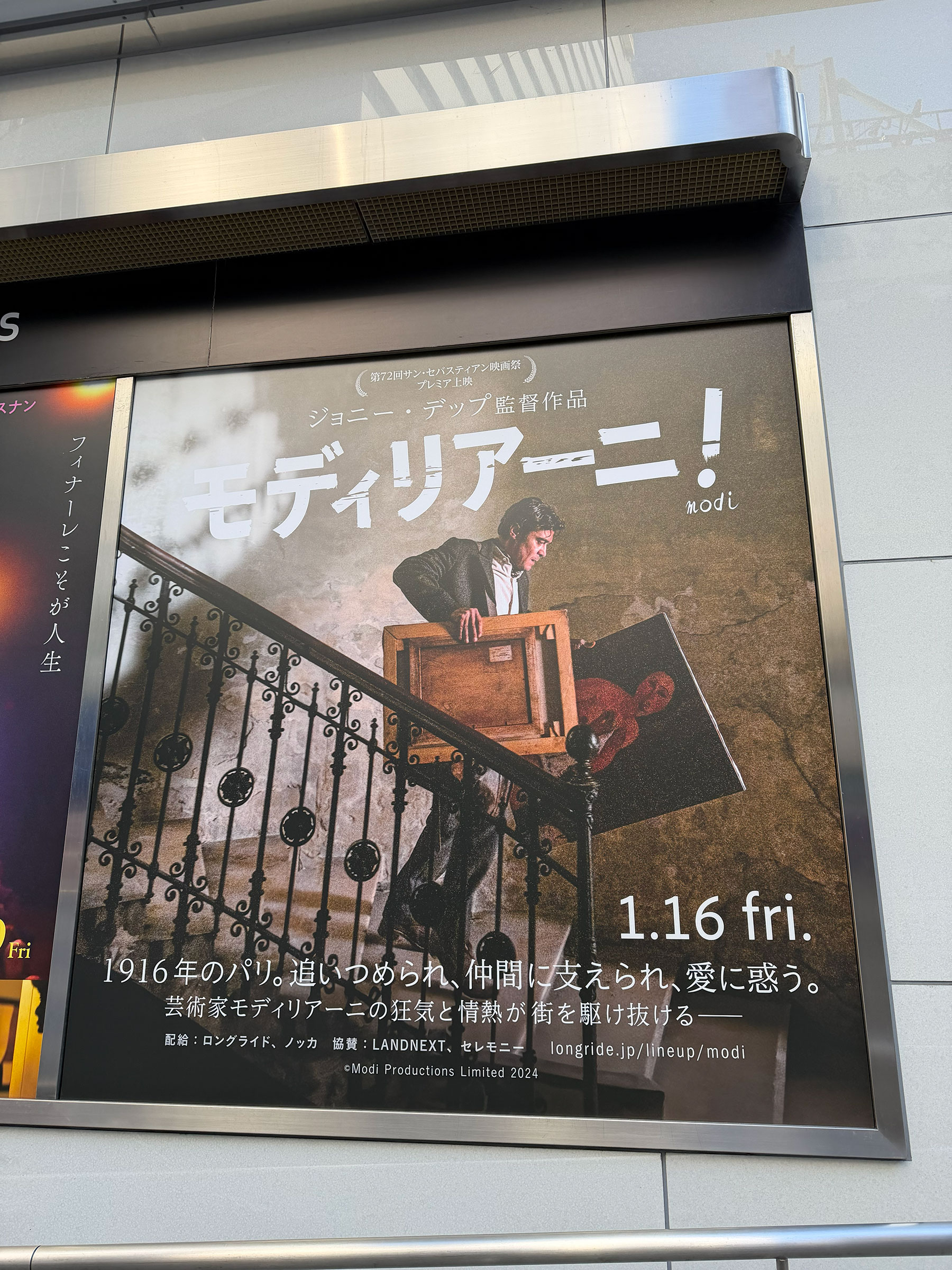 訪れたのは今年初となるTOHOシネマズシャンテ、鑑賞したのは、ジョニー・デップがアル・パチーノの要請で30年振りにメガフォンを取った作品、第一次世界大戦の足音と文明の頽廃に狂乱する1916年のパリを舞台に、のちにその名を芸術史に刻む画家の3日間を描いたモディリアーニ!』(LONGRIDE×ノッカ配給)