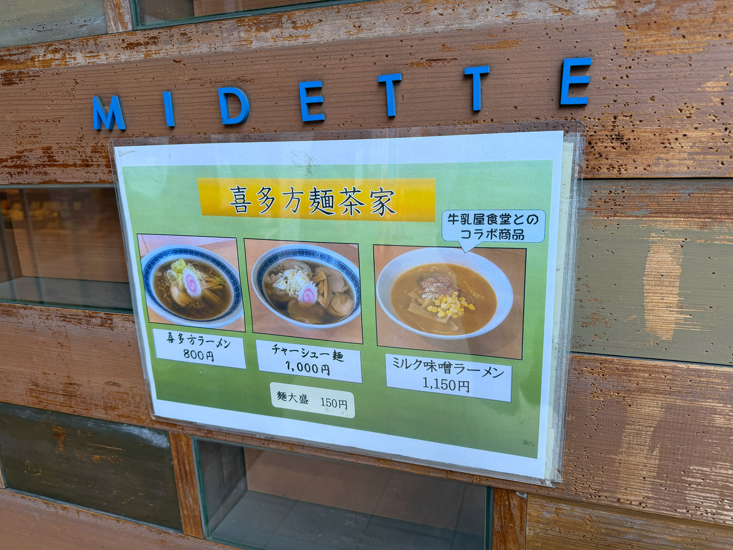日本橋ふくしま館、喜多方麺茶屋出店当時の店頭に掲示されたメニュー。