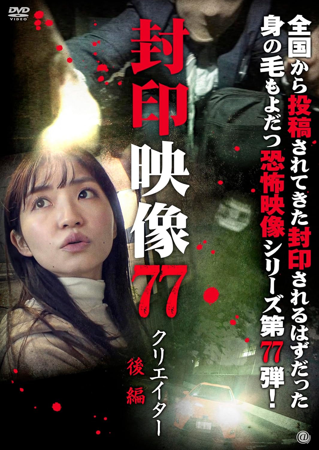 4月26日に、2025年6月リリースの『封印映像77 クリエイター 後編』を鑑賞。釣り目的で地図にも載っていない沼を訪れた投稿者と友人が遭遇する恐怖《ヌシ》、妻から暴力を振るわれるようになった投稿者が証拠として撮影を始めたところ、記録された妻の奇行とその顛末《DV》、俳優である投稿者が以前から欲しかった乗用車を手に入れたことで見舞われる異様な出来事《愛車》、謎の投稿者から送られた、“幽霊を作る”という映像のその先を追う表題作の全4篇を収録。